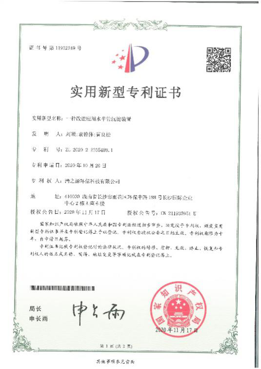近日,清之源環保科技有限公司申請的六項專利“一種改進應用水平管沉淀裝置”、“一種組合模塊化調節池”、“一種用于污水處理系統的氣提器”、“一種膜組件在線清洗裝置”、“一體式MBR污水處理裝置”、“一種高效深度脫氮除磷過濾器”通過了國家知識產權局的授權。本次授權的通過,意味著清之源環保在污水治理設備的研發進程上又邁出了堅實的一步。