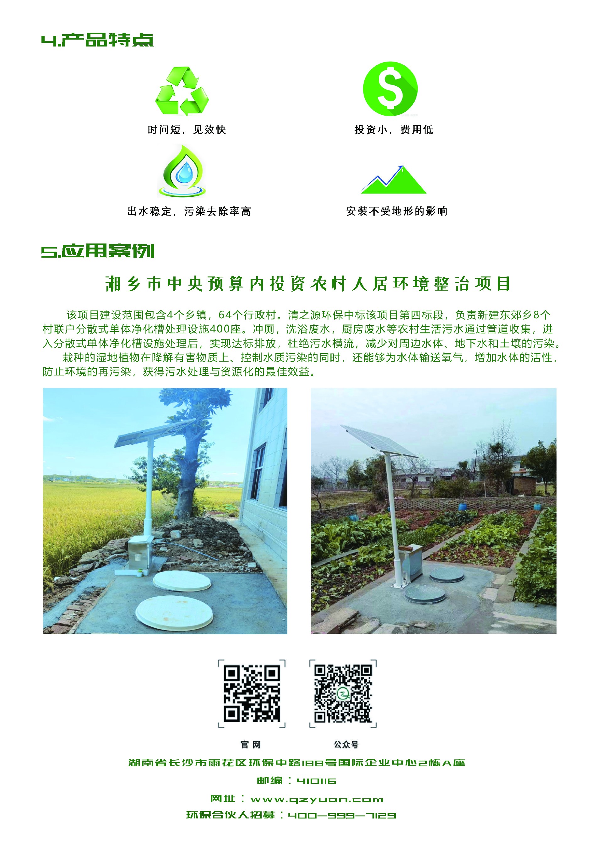 以上就是關(guān)于清之源環(huán)保太陽(yáng)能戶用凈化槽設(shè)備使用手冊(cè)的全部?jī)?nèi)容,如果您對(duì)此感興趣或者想成為我們的環(huán)保合伙人,請(qǐng)直接致電清之源環(huán)保免費(fèi)熱線:400-999-7129或者點(diǎn)擊在線咨詢了解更多精彩!